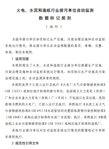為做好火電、水泥和造紙行業(yè)污染物排放自動(dòng)監(jiān)測數(shù)據(jù)標(biāo)記和電子督辦試點(diǎn)工作,推動(dòng)建立以排污單位自主標(biāo)記為基礎(chǔ)的數(shù)據(jù)有效性判定規(guī)則體系,我局組織技術(shù)單位編制了《火電、水泥和造紙行業(yè)排污單位自動(dòng)監(jiān)測數(shù)據(jù)標(biāo)記規(guī)則(試行)》(以下簡稱標(biāo)記規(guī)則)。